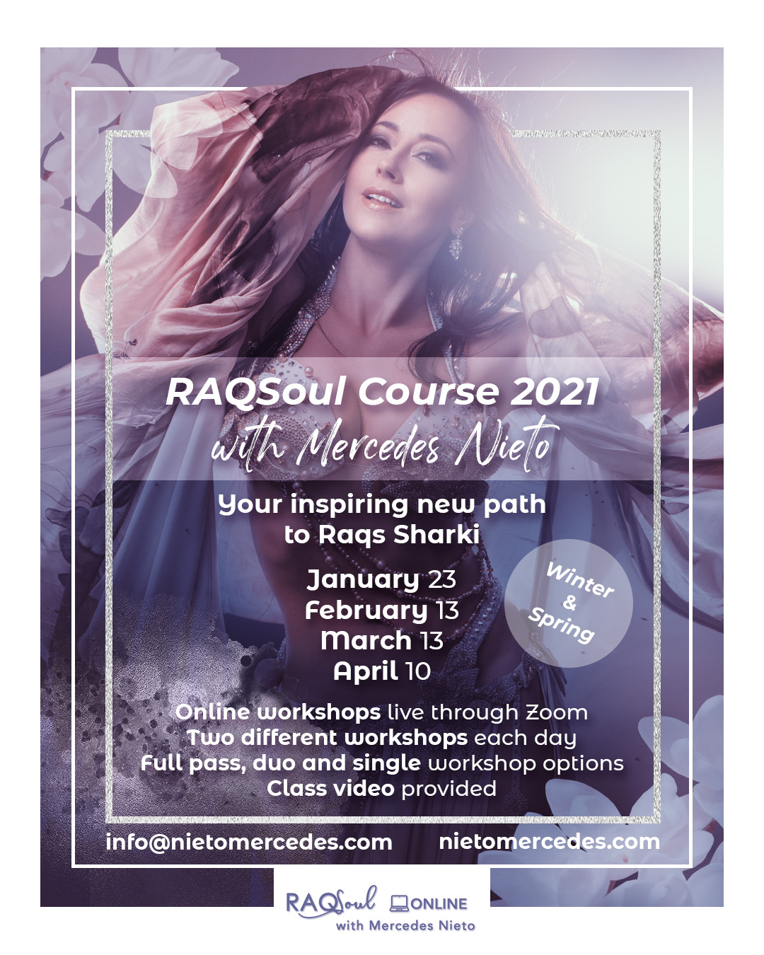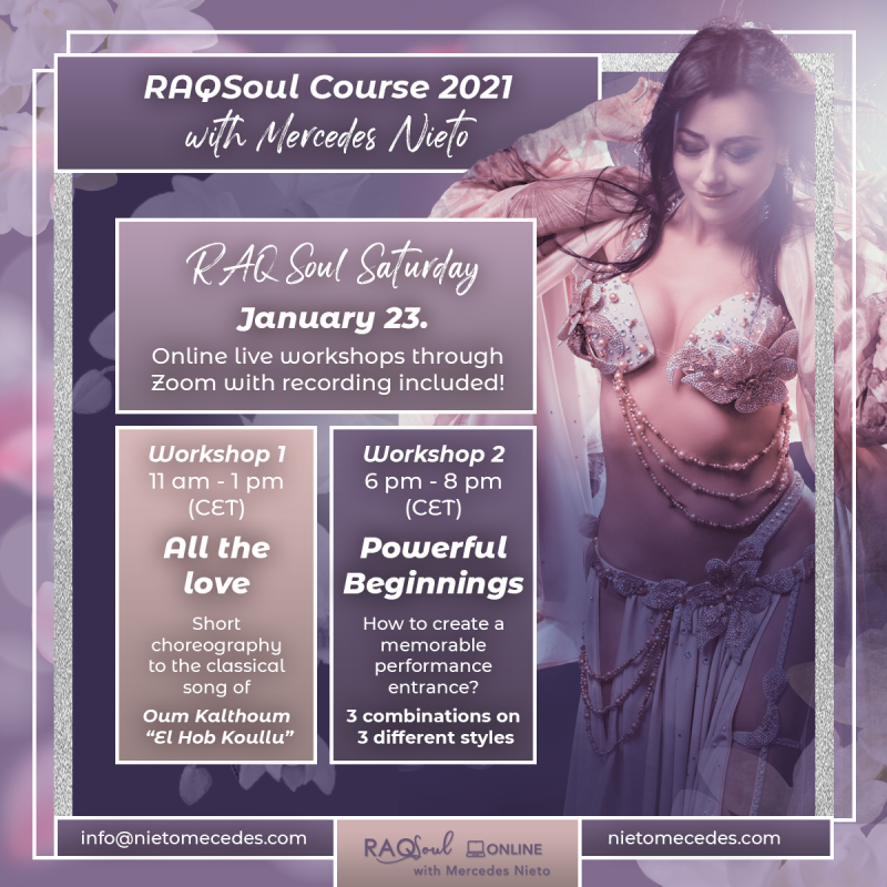 Immerse in your new path to Raqs Sharki with Mercedes – endless inspiration for your technique, dance stylization, sophisticated choreographies, training, and artistic development – just what your dance needs this winter